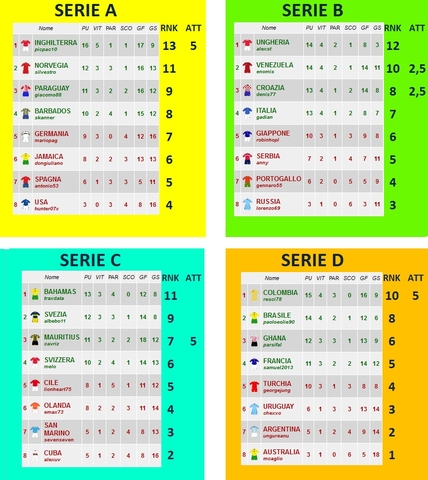 Nel 4^ campionato segnaliamo la vittoria dell'INGHILTERRA in serie A che dopo aver ottenuto 3 promozioni consecutive dalla serie D, chiude la favola vincendo la serie A...