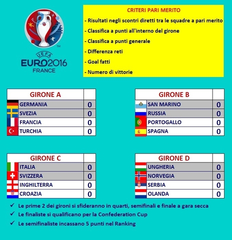 Dalla prossima giornata e per 6 giornate ci saranno gli EUROPEI. Ecco i gironi