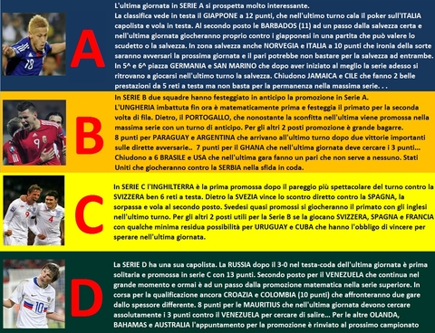 Scendono anche GERMANIA, JAMAICA e CILE per una Serie B che si prospetta di altissimo livello con le prime due squadre del ranking.
