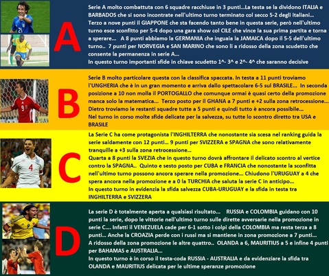 Ricordo che dopo questo turno, come da regolamento, le squadre vincenti dei 4 incontri, prenderanno 5 punti ranking