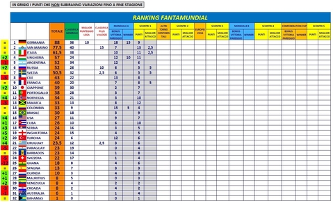 Svivola invece all'11° posto la RUSSIA (-5), uscendo dalla TOP 10. Pe...