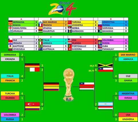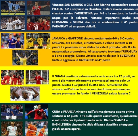 In SERIE A primeggia il SAN MARINO per via del miglior scontro diretto sull'ITALIA..si salvano GERMANIA e CILE nonostante steccano all'ultimo turno..