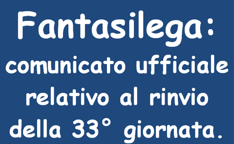 Non sono affatto contento della decisione presa dalla lega perche' la ritengo inadeguata oltre che sbagliata,ma ne prendiamo atto e non possiamo ignorarla.In pratica la 33a giornata si recuperera' il 25 aprile mentre il prossimo fine settimana si giochera' la 34a giornata di serie A.Squalificati che non giocheranno una partita che avrebbero giocato,squadre che magari si salveranno giocando una partita piu' facile giocando il recupero senza interessi e probabilmente altri giocatori squalificati che non giocheranno il recupero che giocandosi questo sabato invece avrebbero giocato.Insomma un caso...
