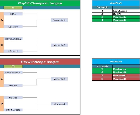 Faccio io miei pronostici di coppa (mi resta solo questo): Finale Champions -> Los Churros - Elevenchickens (e come potrebbe essere altrimenti) :D Finale Europa League -> Tiche (ovviamente :P ) - KAKAMPIONI