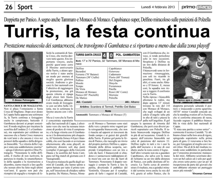 Volevo specificare che di solito quando si parla di Turris viene fuori solo quella della Campania che milita in serie C, siccome la mia Turris essendo stata una grande squadra un po di anni fà, adesso milita in 3° categoria e non ne parla nessuno hahahahahaha pero rimarrà sempre la mia squadra preferita e dopo viene il Milan!!!!!!