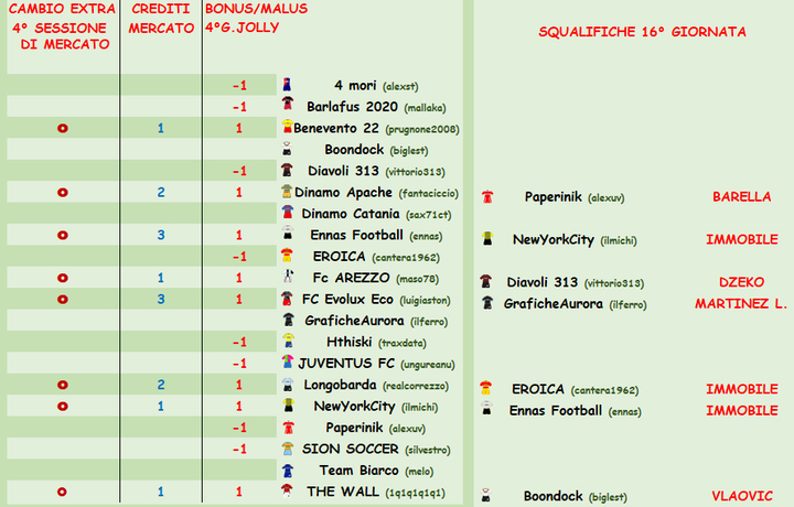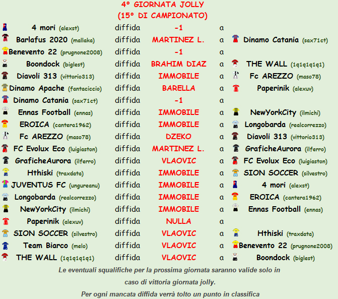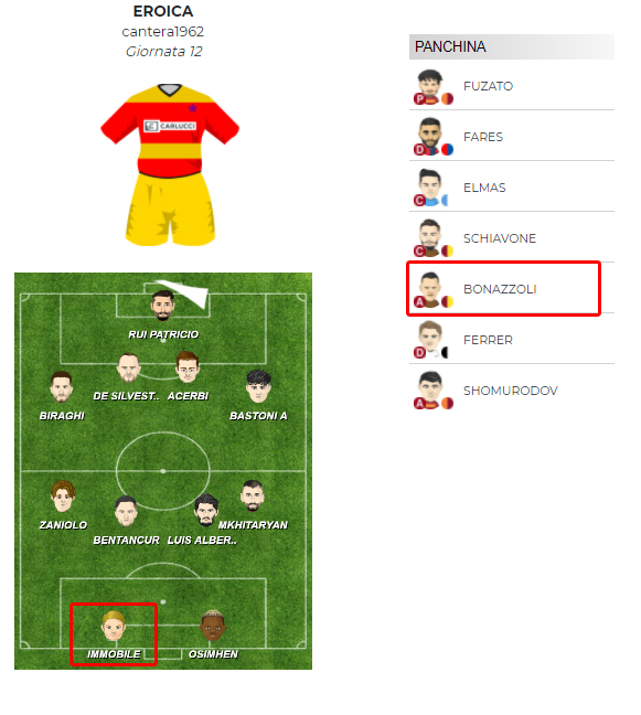 La squadra Eroica ha schierato Immobile nonostante la squalifica, il giocatore è stato sostituito come da regolamento. Scatta la doppia squalifica per la 13° giornata.