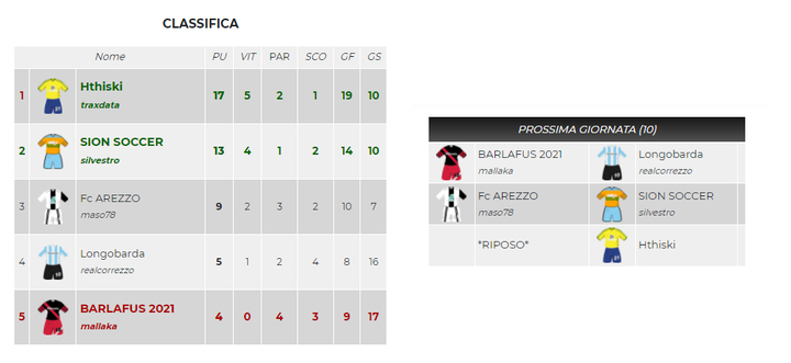 Anche qui la prima in classifica Hithiski è già al sicuro in Champions e riposa per l'ultimo turno. Lo stesso vale per Sion Soccer ormai irraggiungibile da Fc Arezzo che lo sfiderà in questa giornata. Anche maso78 è già qualificato per la Uefa pure in caso di sconfitta. Situazione più intrigante è quella che abbiamo tra Longobarda e Barlafus2021; uno scontro diretto all'ultima giornata per decidere chi occuperà l'ultimo posto Uefa. Al momento è qualificata Longobarda con un punto di vantaggio, Barlafus 2021 deve puntare solo alla vittoria per qualificarsi.