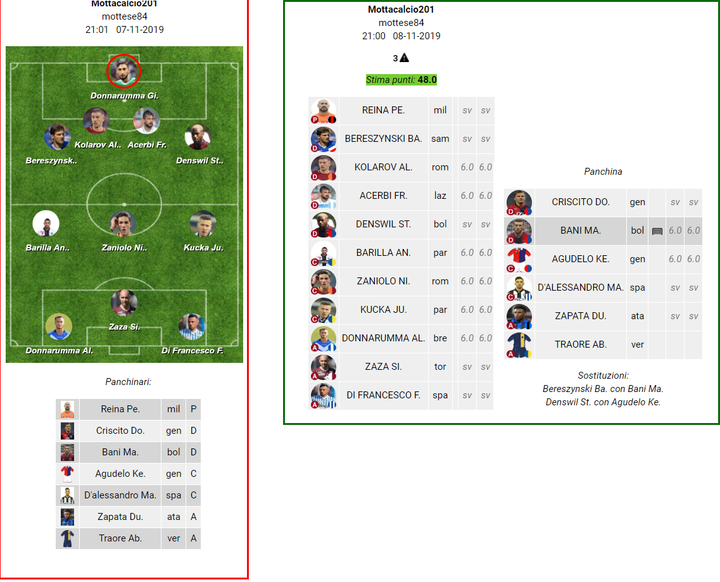 La squadra Mottacalcio201 ha schierato Donnarumma G. nonostante la squalifica. Abbiamo rimpiazzato il giocatore seguendo il regolamento di lega.