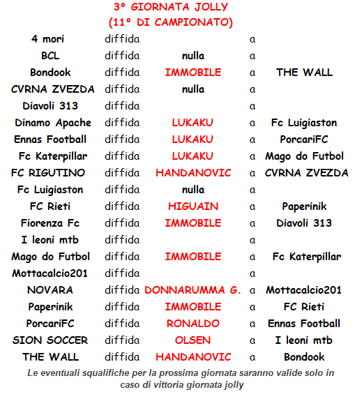 Queste sono tutte le diffide da voi presentate per la 3° Giornata Jolly.