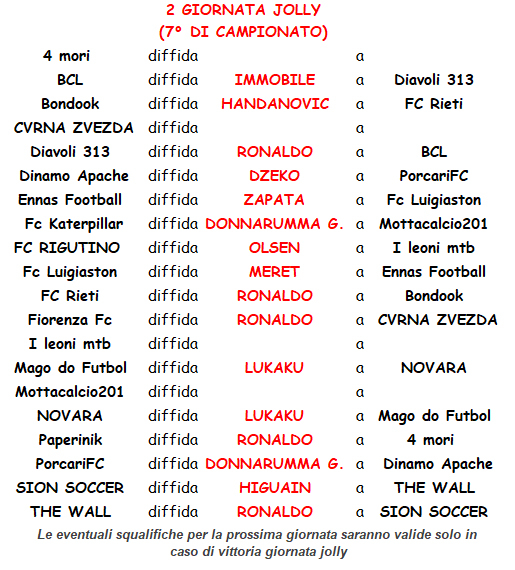 Queste sono tutte le diffide da voi presentate per la 2° Giornata Jolly.