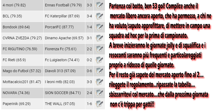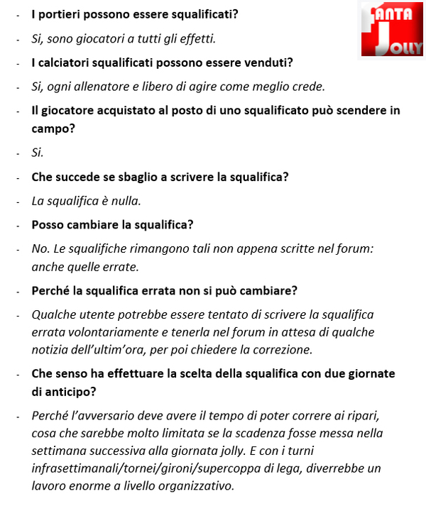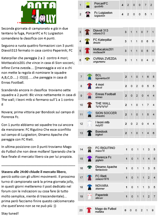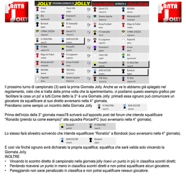 Il prossimo turno di campionato (3) sarà la prima Giornata Jolly. Anche se ve lo abbiamo già spiegato nel regolamento, visto che si tratta della prima volta che la sperimentiamo, vi postiamo questo esempio grafico per facilitare la cosa un po' a tutti.