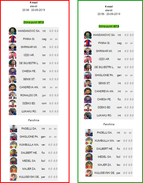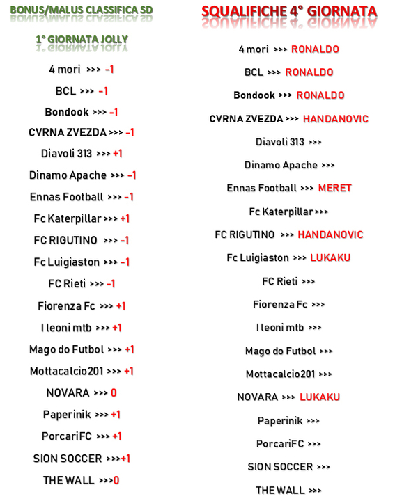 La squadra 4 mori ha schierato Ronaldo nonostante la squalifica. Abbiamo rimpiazzato il giocatore seguendo il regolamento di lega.