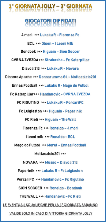 Queste sono tutte le diffide da voi presentate per la 1° Giornata Jolly.