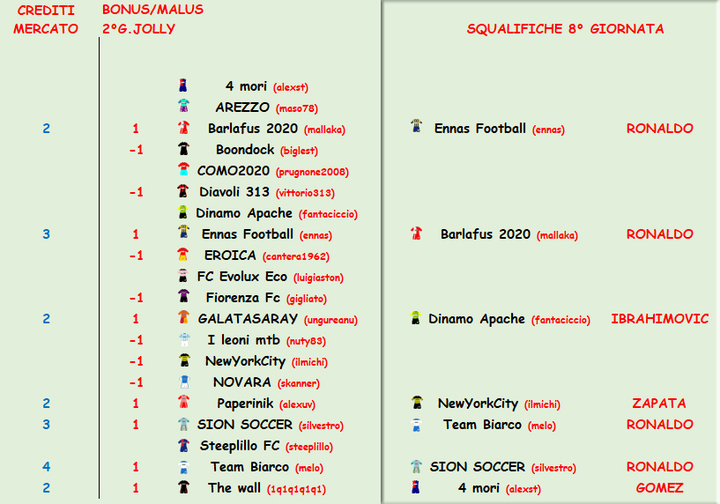 Visto che per alcuni non è visibile da pc nella home di lega, ripubblichiamo la tabella di Fantajolly. Vediamo se prendendo il link direttamente da Fantaclub si risolve il problema.