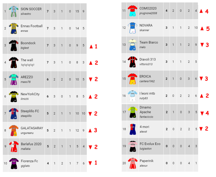 Salve gente! Questa sopra è la situazione in classifica dopo la quarta giornata di campionato.