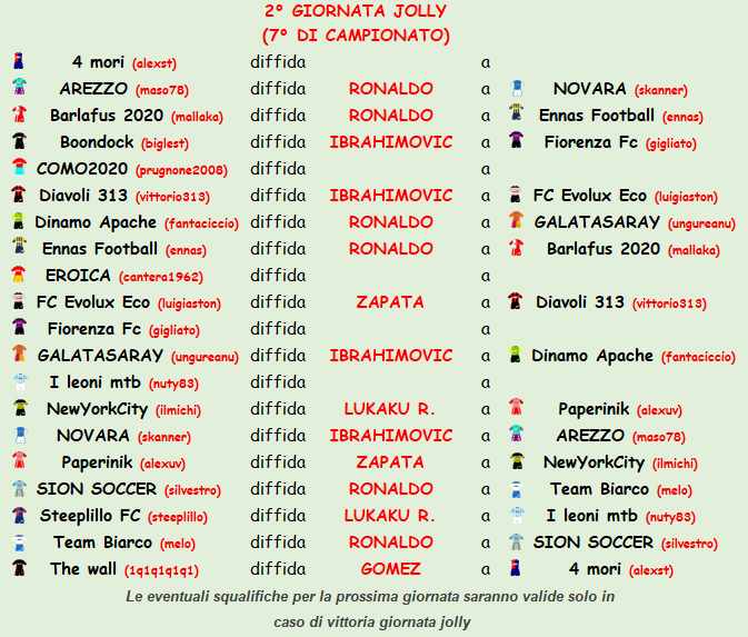 Diavoli313 e Sion Soccer sono le squadre che hanno tratto maggiori benefici dalle Giornate Jolly con 4 punti guadagnati sugli avversari. Ileonimtb ha invece perso più punti nei confronti delle altre compagini (-3).