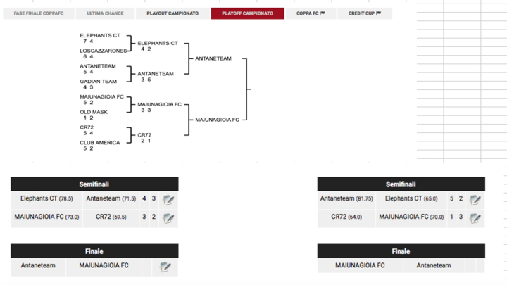 Dopo le festività pasquali eccoci giunti a commentare tutto quello che è successo nella fase finale PLAYOFF dove si qualificano alla finale con scontro d'andata e ritorno due squadre veramente ben organizzate e ben allenate da amadin @Roberto Giacomini e @Gabriele Giacomini con il suo MAIUNAGIOIAFC e dall' ANTANETEAM di podo85 @Alberto Podeschi che disputeranno la finale dei PLAYOFF nei prossimi due turni ovvero la 34° e 35° esima giornata di Serie A!