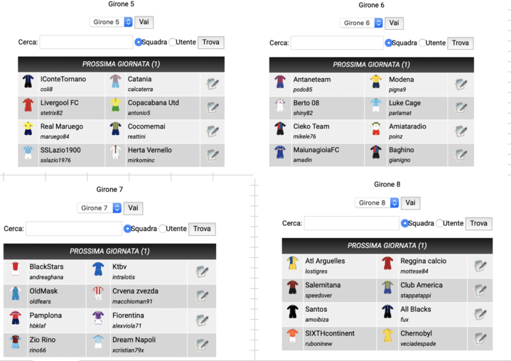 E' stato appena creato il calendario di campionato per i gironi 5°-6°-7°-8° ed è tutto consultabile nella sezione CALENDARIO all'interno della lega FantaserieaFC