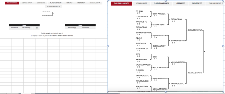 Eccoci giunti ragazzi a commentare la FASE FINALE della COPPAFC dove approdano in FINALE due squadre che hanno avuto la delusione di uscire dalla fase finale dei PLAYOUT per il SUMMERFESTIVAL di themask e di uscire sconfitto nella finale PLAYOFF il MAIUNAGIOIAFC di amadin e si giocheranno la COPPAFC nei prossimi due turni della lega e ovviamente della SerieA; Complimenti ad entrambi per la qualificazione in finale e vi faccio un grosso in bocca al lupo!