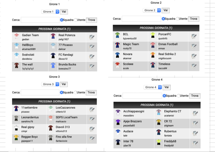 E' stato appena creato il calendario di campionato per i gironi 1°-2°-3°-4°
