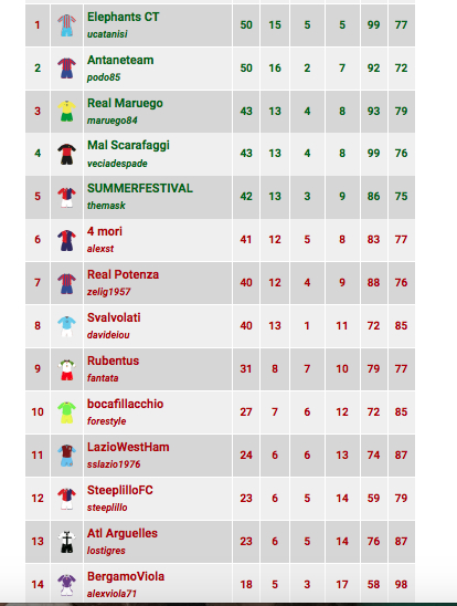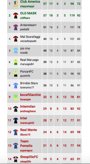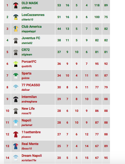 Vince in questo turno di campionato pure la 3° classificata Antaneteam di podo85 che fa un favore a parecchie squadre in lotta per raggiungere la zona PLayout in quanto ha sconfitto il Bocafillacchio di forestyle che era in lotta...