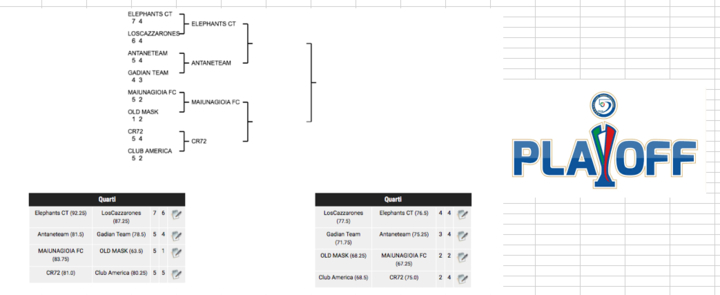 Buongiorno ragazzi, eccoci giunti a un nuovo aggiornamento della lega e iniziamo partendo dai PLAYOFF dove clamorosamente vengono eliminate nei quarti di finale tutte le prime 4 teste di serie! Partiamo con ordine analizzando il 1° scontro nel tabellone ovvero quello tra gli ELEPHANTSCT di ucatanisi e LosCazzarones di citterio10 dove nella sfida d'andata abbiamo assistito a una partita mozzafiato finita 7 a 6 per l'allenatore catanese @Carlo Fantacharlie che vince la battaglia con il punteggio di 7 reti a 6 grazie soprattutto a un solo goal subito ...