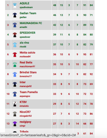 In attesa della partenza dei PLAYOFF, PLAYOUT e TORNEO ULTIMA CHANCE facciamo il punto della situazione per il TORNEO COPPAFC dove manca solamente una giornata al termine della fase a gironi e alcuni verdetti sono stati già emessi! Il primo verdetto che possiamo estrapolare è la qualificazione alla fase finale di 3 squadre quali Aquile di spadinoteam, Gadian Team di gadian e MAIUNAGIOIAFC di amadin che hanno conquistato la bellezza di 48,46 e 42 punti!