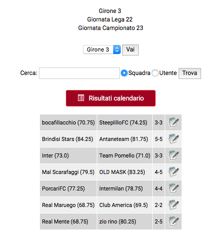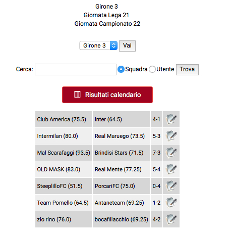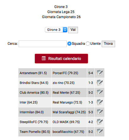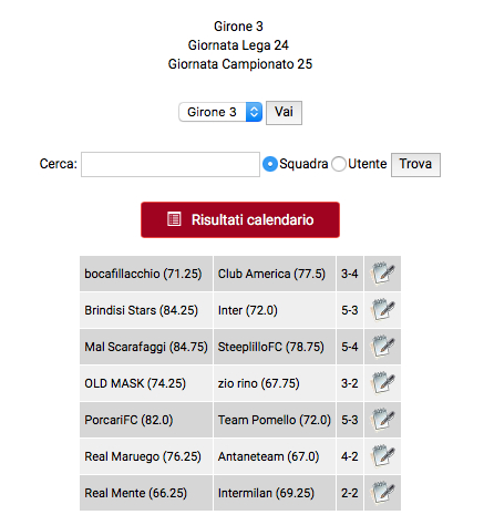 Giornata di verdetti questa per il 3° girone in quanto accedono alla fase PLAYOFF le due squadre dominanti finora del girone ovvero il CLUB AMERICA e l OLDMASK di oldfears che vincono pure sta giornata contro il Bocafillacchio di forestyle e contro lo Zio RIno di rino66; sconfitte che fanno male perchè per Bocafillaccio si allontana la zona PLAYOUT a 2 punti mentre per Zio RIno con 34 punti non è sicuro di parteciparvi in quanto ci sono ancora 2 gare al termine della fase a gironi!