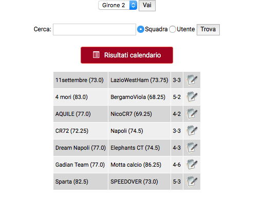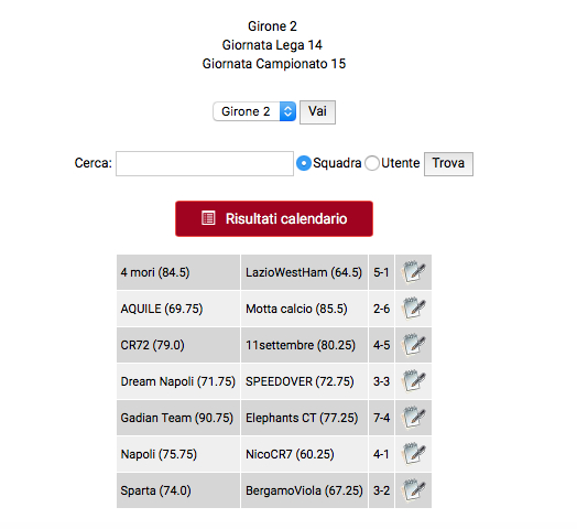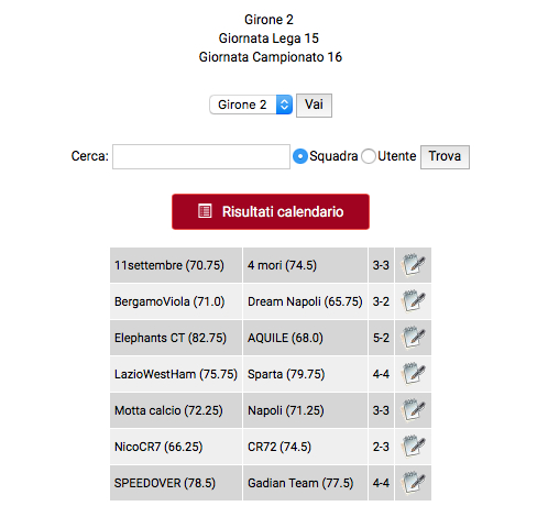 Il più felice della 15° giornata è la capolista CR72 di stigteam che vince una delicata partita in trasferta contro NicoCr7 di nicogabri92 e allunga su tutte le pretendenti alla vittoria del girone al termine della 26° giornata: parliamo di MottaCalcio di mottese84 che pareggiano contro il Napoli di parlamat con il punteggio di 3 a 3, parliamo dello Sparta di guizza che pareggia in casa della LazioWestHa...