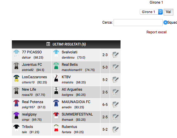 Dopo una pausa di 20 giorni si ritorna a commentare i risultati del campionato e della lega. Cominciamo con il girone 1 dove Dobbiamo dare atto a citterio10 di aver allestito una squadra tosta e competente che con i suoi 19 punti guida la graduatoria del gruppo! Insegue la capolista gli SVALVOLATI di davideiou che proprio all'ottava giornata di campionato perdono 2 punti importanti ma era di fronte al Realgipsy di cimpi! Tribols dopo la sconfitta alla 7° giornata ritorna alla vittoria all'ottava sconfiggendo di misura uno sfortunato Atl Arguelles di lostigres! Real pot...
