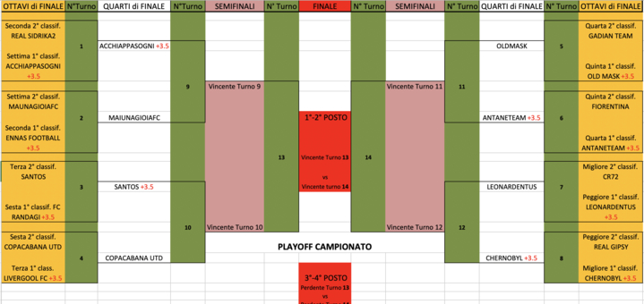 In bocca al lupo per le squadre coinvolte e consultare la sezione TORNEI e il FORUM di lega per avere tutte le info riguardo ai casi di pari merito che possono capitare in questi scontri di ottavi, quarti , semifinali e finale.