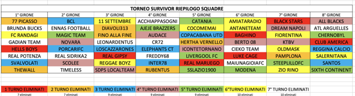 come da regolamento nel Torneo Survivor nel 3° turno le squadre eliminate sono 9. La prima delle 9 è ILOSCAZZARONES di citterio10 per la non consegna della formazione mentre le altre 8 squadre sono quelle che potete vedere sopra nell'immagine postata.