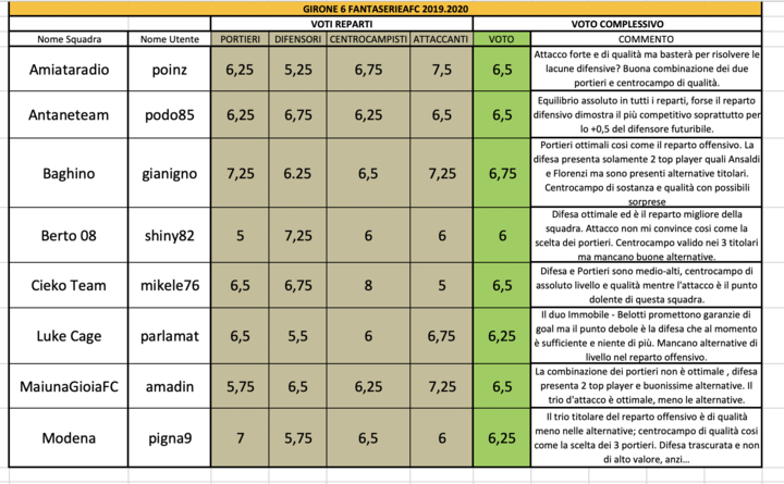 Sono state pubblicate le pagelle delle rose del 6° Girone