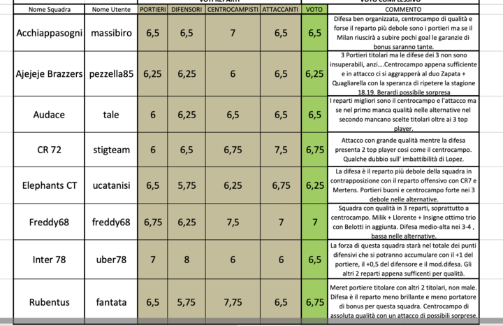 Stando a queste pagelle mi dovrei giocare l'ultimo posto con pezzella85, faro di tutto per sovvertire il pronostico e magari giocarmi il primo di posto.