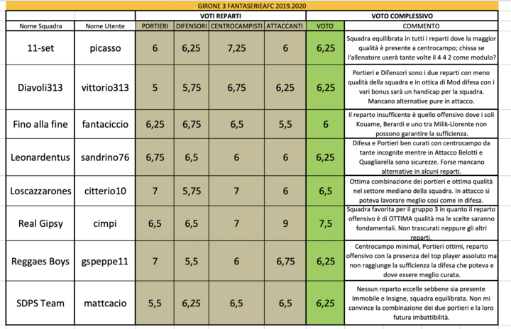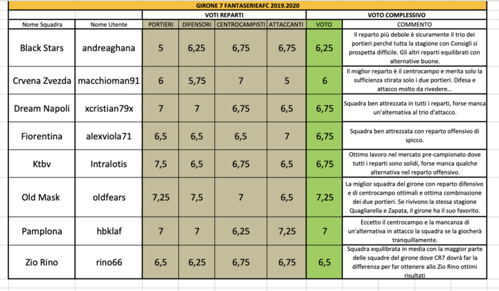 Sono state pubblicate le pagelle delle rose del 7° Girone