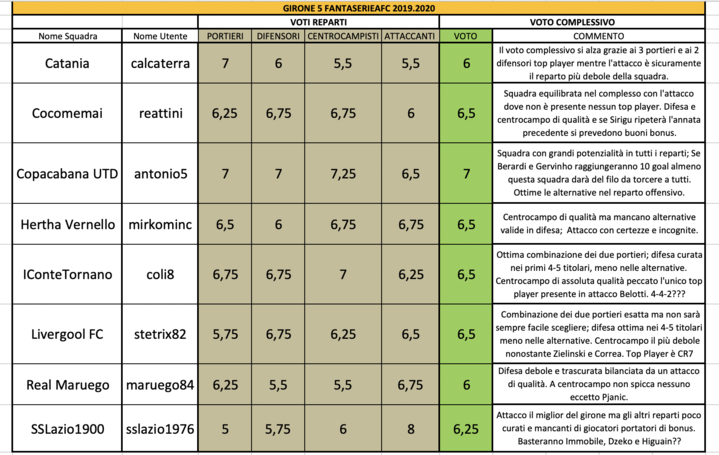 Sono state pubblicate le pagelle delle rose del 5° Girone
