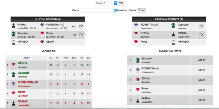 11° giornata: esce di scena dalla competizione il GENOA di davideiou con i soli 56.75 punti ottenuti grazie alle 5 sberle prese dal genoa nella giornata milanese contro l Inter;