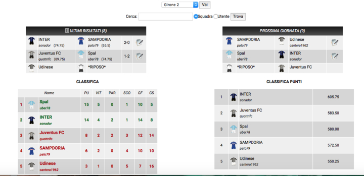interessante è vedere che la coppia al comando ha più di 20 punti di vantaggio sulla coppia Inter di sonador e la Spal di uber78 che grazie a prestazioni costanti nelle ultime 4 giornate guadagnano una posizione rispetto all'aggiornamento precedente;