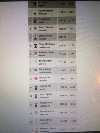Eccolo qui hbklaf con la sua tacchinardi e la lega fantatrequarti si alza ancora di livello !