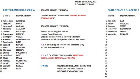 Vi ricordo di iscrivervi alla lega malatidicalcio...Per la passowrd contattatemi...cerco new entry chi fosse interessato mi contatti.