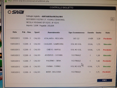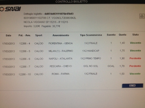 Scommessa Poggio: Catania-Cagliari 1, fiorentina-Milan X, Napoli-Genoa 1, Siena-Parma 1, Sampdoria-Palermo X