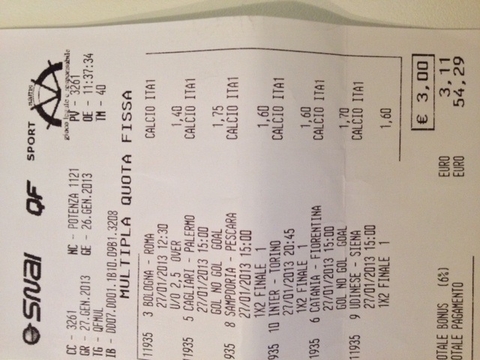 fio-parm 1, gen-laz x, pal-ata 1, pes-bol x E speriamo bene...