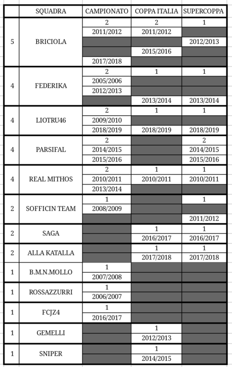 La coppa Italia si svolgerà come l'anno scorso con la modalità formula1