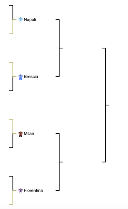 SUPERCOPPA 2019 che ha visto trionfare il NAPOLI di steeplillo che vince entrambe le sfide con il MILAN di gennaro55 e con il SASSUOLO di rino66...