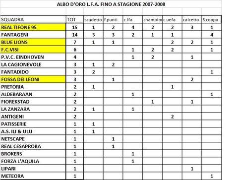 Ho ritrovato l'albo d'oro della L.F.A. fino al 2008, anno in cui sospendemmo provvisoriamente le attività....