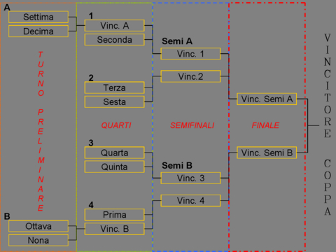 giusto fare lo spareggio tra le ultime quattro per i due posti nei quarti di coppa. sono quindi per la coppa aperta a tutti con il turno preliminare tra le ultime 4.