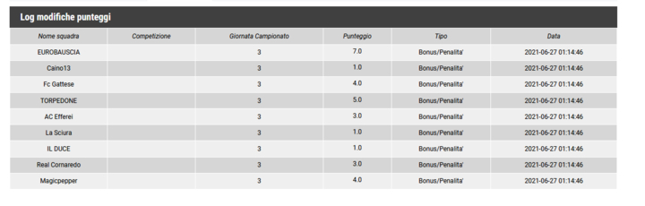 Sono state ricalcolate tutte le partite con i bonus e malus nei tempi regolamentari.