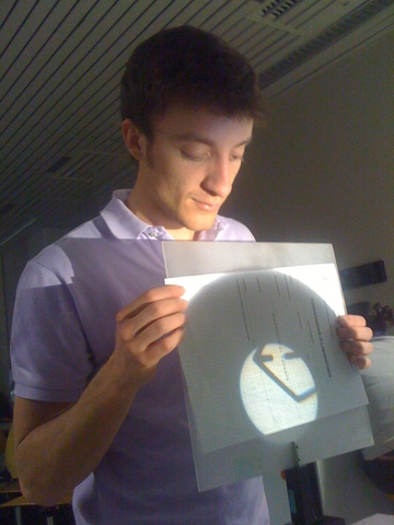 Infatti la foto ritrae il Neo-vincitore del fantacalcio studiare un microscopio composto.