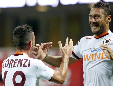 Ecco Totti che saluti il nuovo arrivato Florenzi.