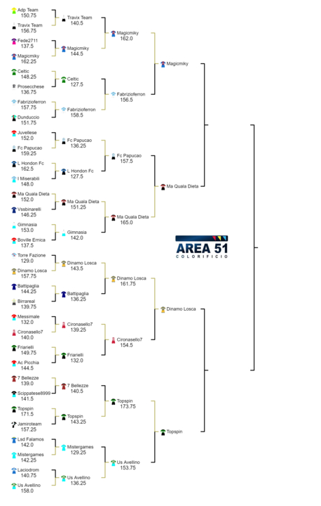 Cambio al vertice della classifica Generale, adesso comanda Abusivi22 con 257.50 punti seguito da Bagheras con 256.50 e FabrizioFerron con 256 punti